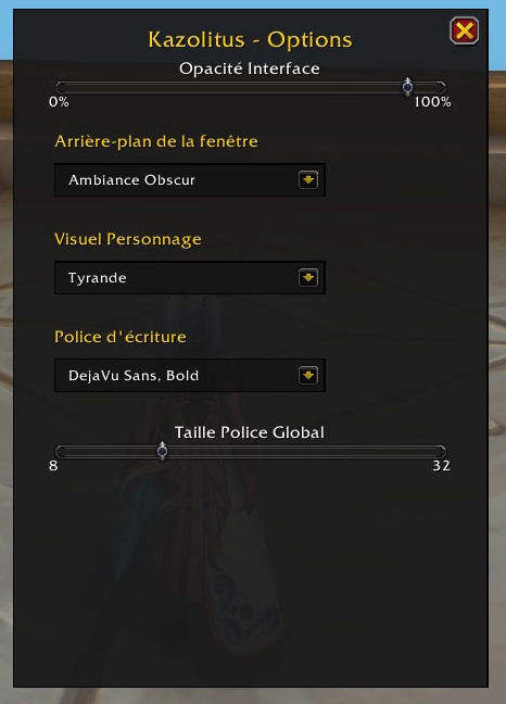 Parce que votre interface doit vous correspondre, Kazolitus propose des options de personnalisation poussées via l'onglet Options :